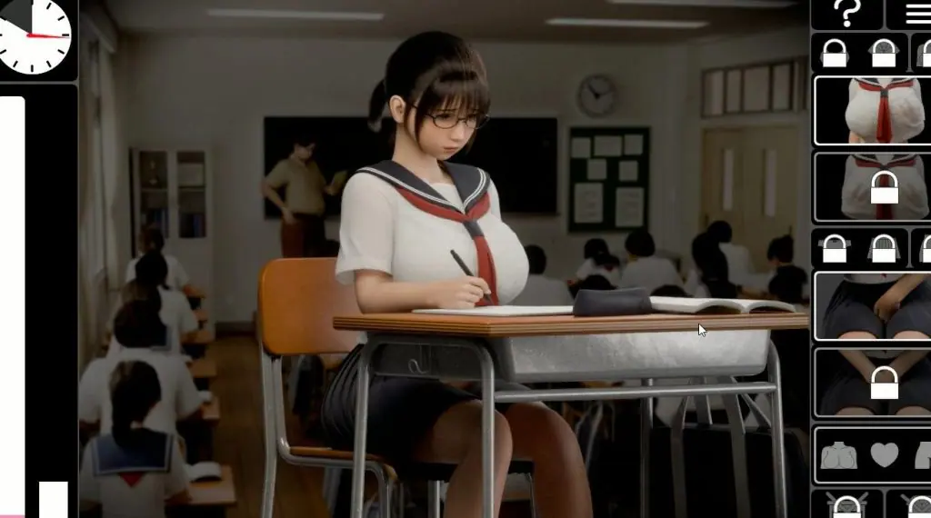 这是一款以“被同学抓住把柄的女孩,被迫在课堂上自W……”为设定的小型模拟游戏,