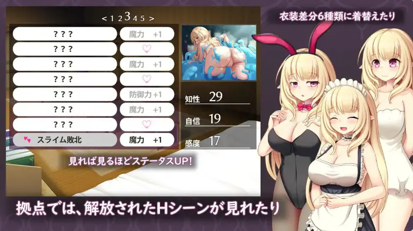 - 淫纹同步系统:战斗累积"刻印值"可切换元素形态,值过高触发"暴走"状态,剧情与CG随之改变