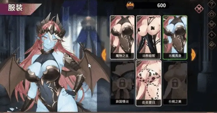10套服装(女王/魅魔/C手/机甲…),每套自带专属技能与H差分